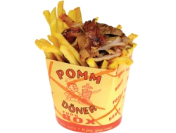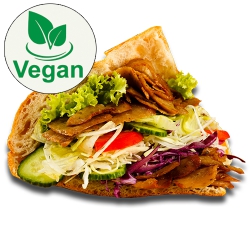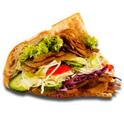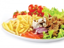 kebap, kipvlees, gebakken paprika, ui en champignons